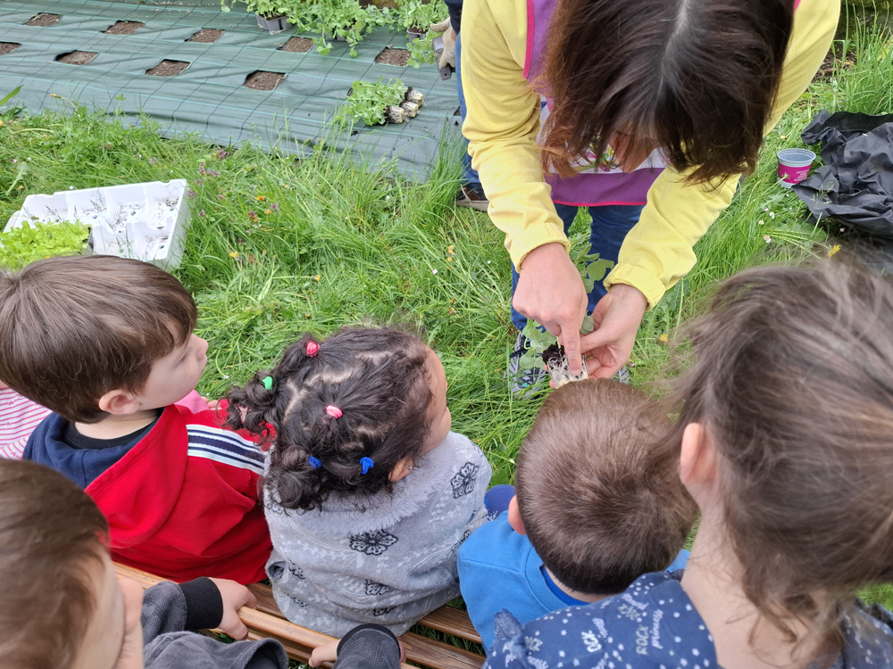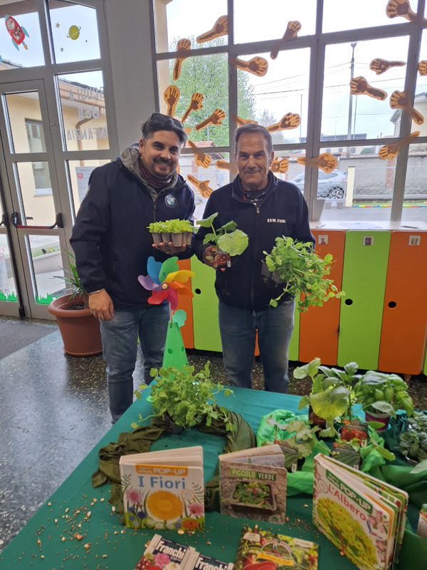 Insieme hanno piantato diverse varietà di ortaggi: zucchine, zucche, insalata, pomodori, piselli, peperoni e basilico. Un momento ricco di significato, in cui i bambini hanno potuto sperimentare direttamente il contatto con la terra, osservare le piantine e iniziare a comprenderne i bisogni.